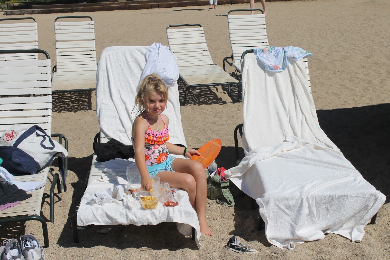 We decided to head to Lake Tahoe when we found out Andrew had Saturday off, which meant we had two family days. We arrived about midnight, so it was only once I woke up that I realized how beautiful our surroundings. I was so reminded of Colorado and it made my heart glad. I love exploring a new area. I had a great morning run, found out a marathon was happening and was the first to cross the finish line after only 2 miles (now that is the way to do it). I passed another runner who gave me a high five, I was on vacation, beautiful surroundings, runners high! I felt so happy!